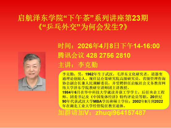 2026年4月8日即席演讲于启航泽东学院周三下午茶第23期会议现场